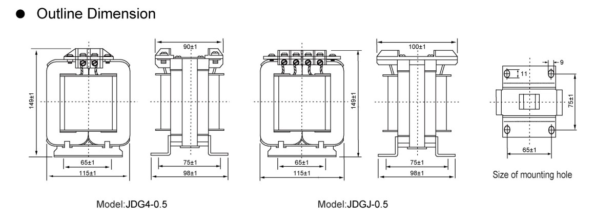 JDG4-0.5 Dimensi Pengubah Voltan Rendah Dalaman Pemasangan