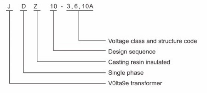 J = Pengubah Voltan, D = Fasa Tunggal, Z = Penebat Tuang Resin Epoksi, 3/6/10 = Tahap Voltan.