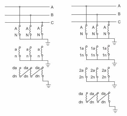 X – Dengan penggulungan voltan sisa (untuk perlindungan pembumian)