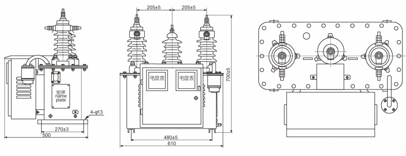 Dimensi Keseluruhan: JLS-6kV, 10kV (Kelas 0.2, Kelas 0.2S), Sesuai untuk digunakan dalam sistem voltan 6KV dan 10KV.