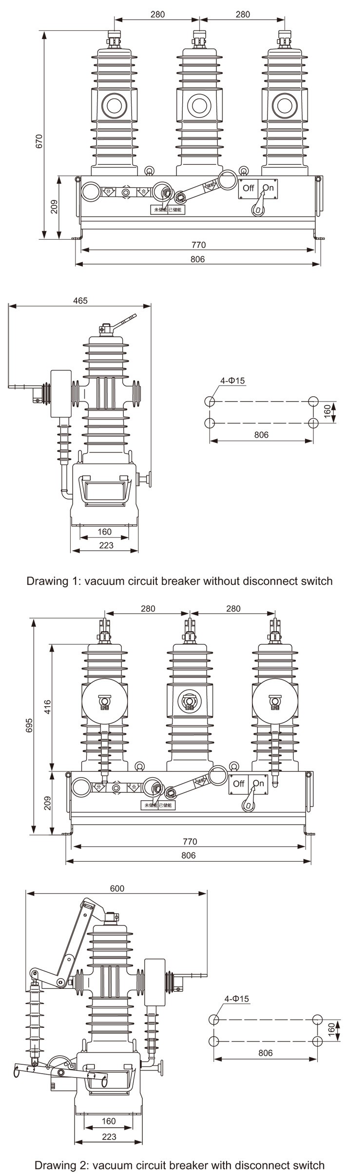 Suis pengasingan bersepadu pilihan: Jika anda memerlukan suis pengasingan, kami boleh menghidupkan Pemutus Litar Vakum Luar Siri ZW43. Tidak perlu membeli bahagian tambahan secara berasingan.
